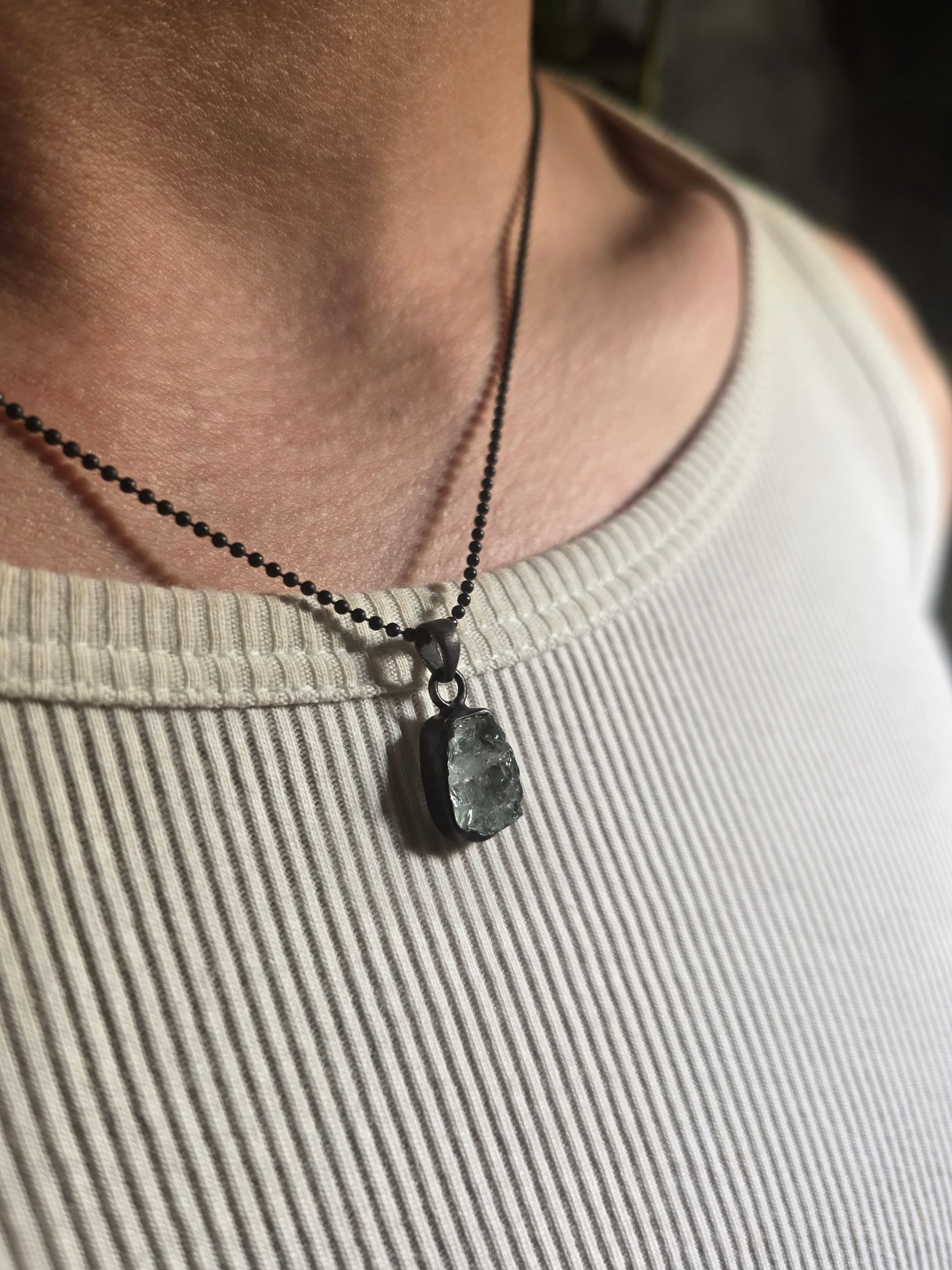 A raw Aquamarine set in sterling silver, devoted to Amphitrite, goddess of the sea’s depth and stillness. Worn close to the body, this talisman embodies calm authority, emotional clarity, and steady presence.
