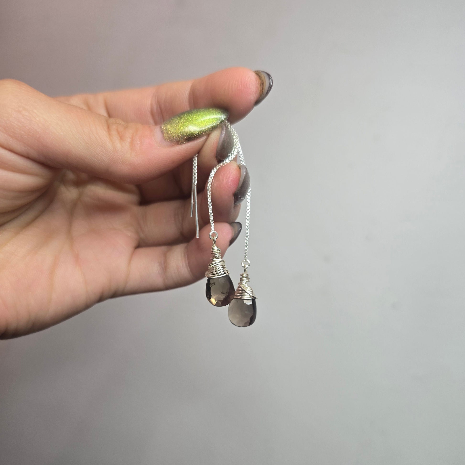 Veil of Shadow – Smoky Quartz Threader Earrings